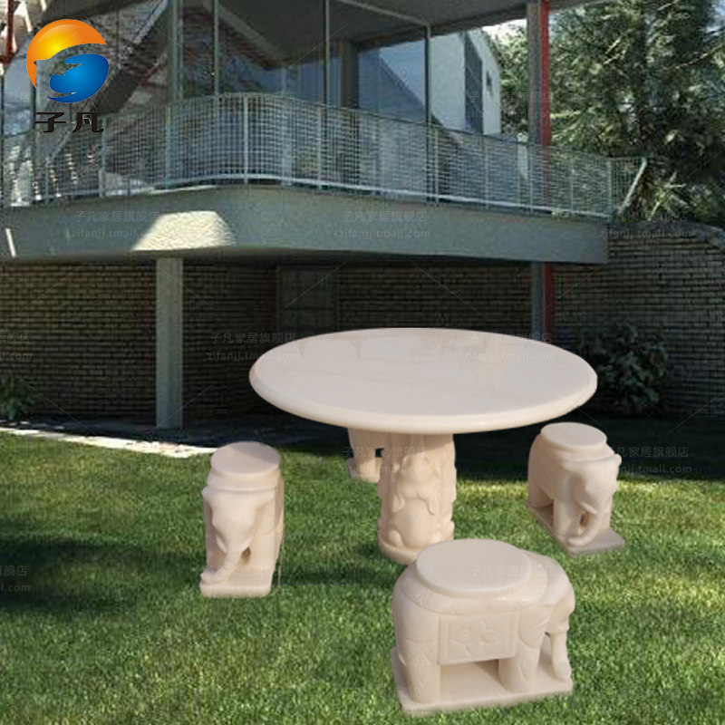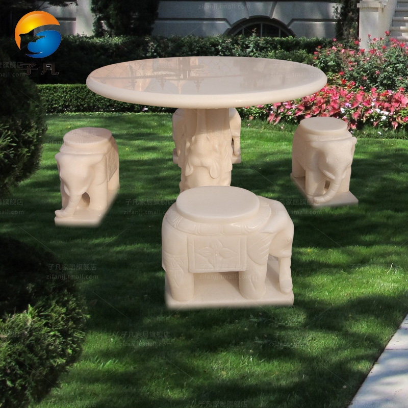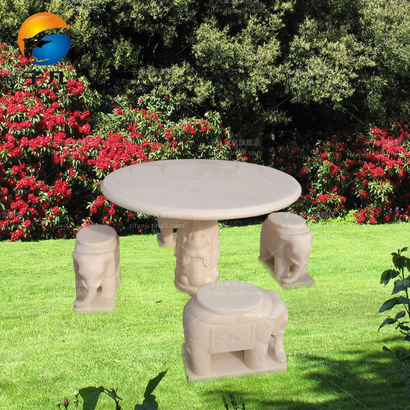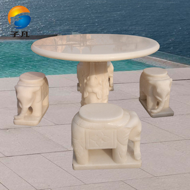 子凡一级汉白玉小象石桌石凳ZY65