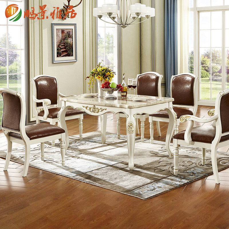 鹏景雅居美式餐桌大理石餐F62Y