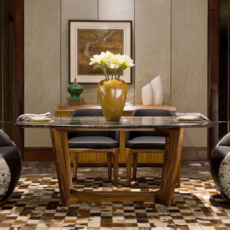 Visney非洲乌金木银白龙大理石餐桌餐椅20231CN