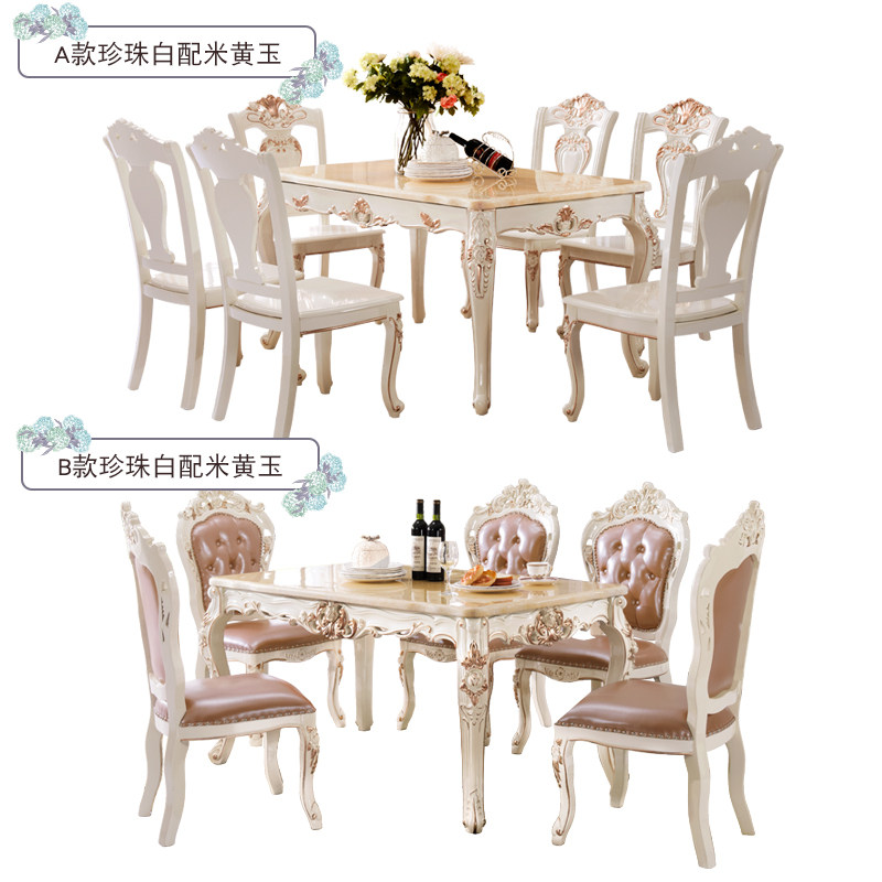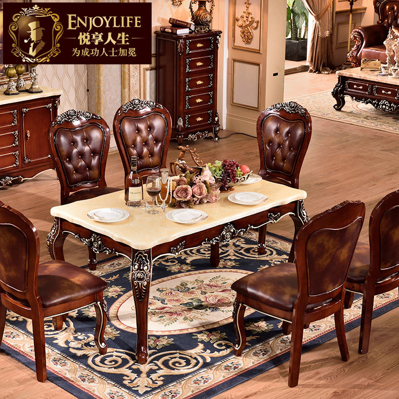悦享人生欧式餐桌天然大理石餐桌椅6人8036-2