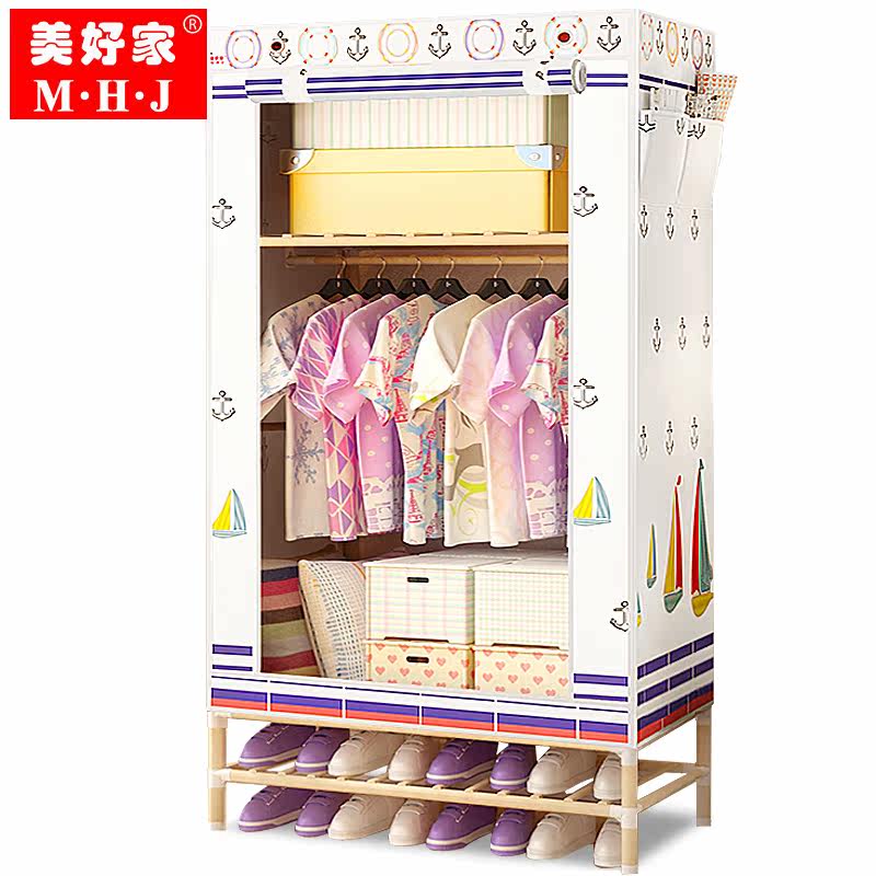 美好家小号布艺实木加固衣橱80实木