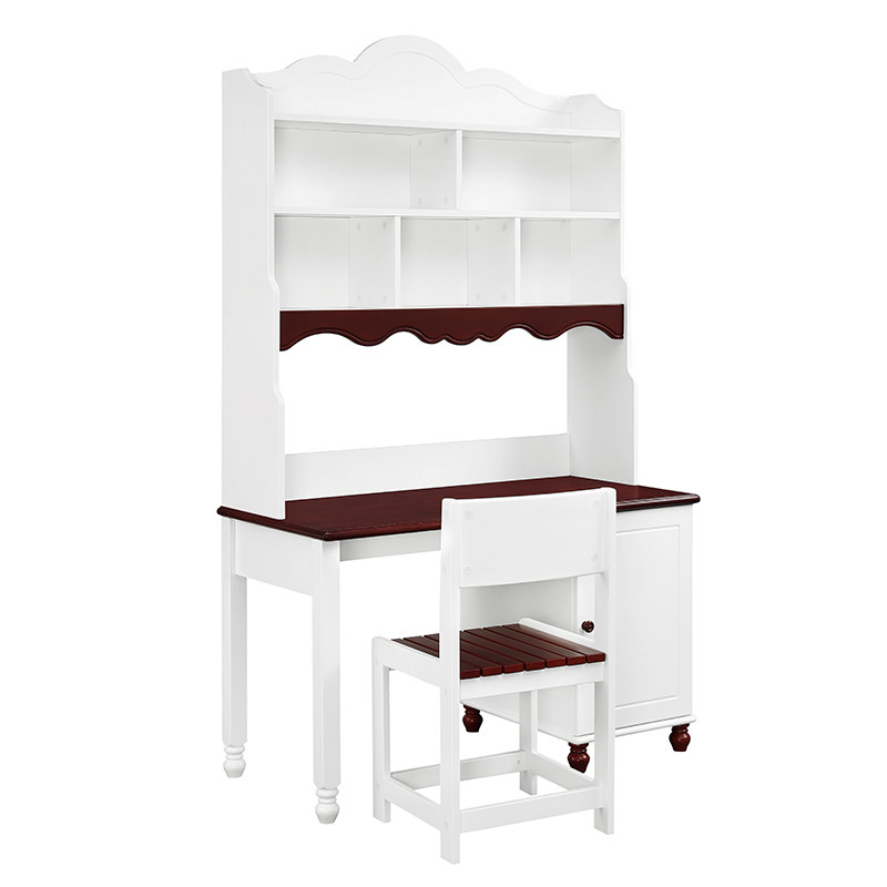 酷漫居儿童家具地中海白色松木写字桌地中海书桌+书架
