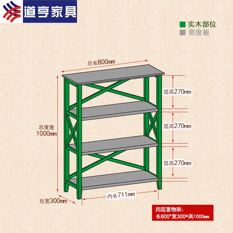 道亨简易实木落地书架HZY-SJ-0004