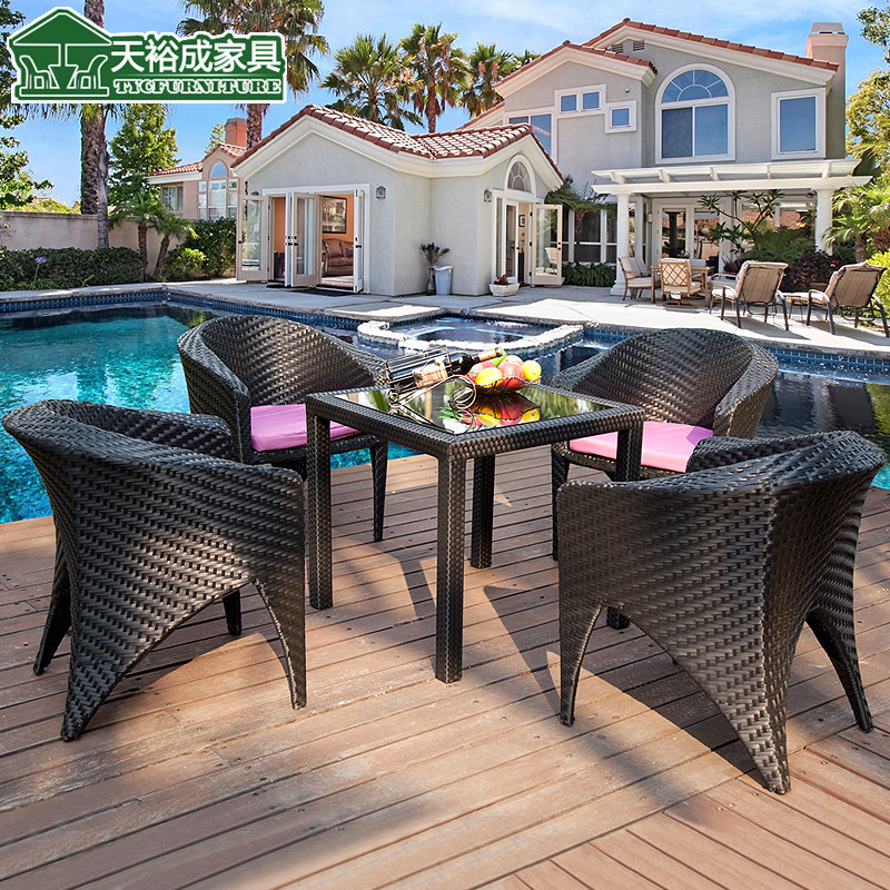 天裕成藤椅五件套户外家具休闲桌椅