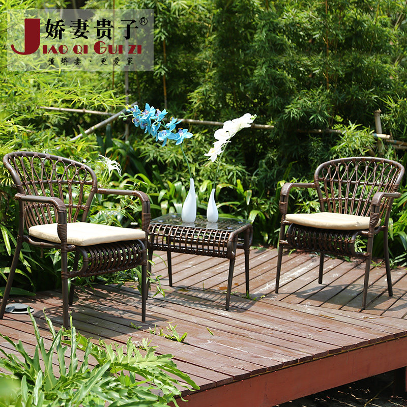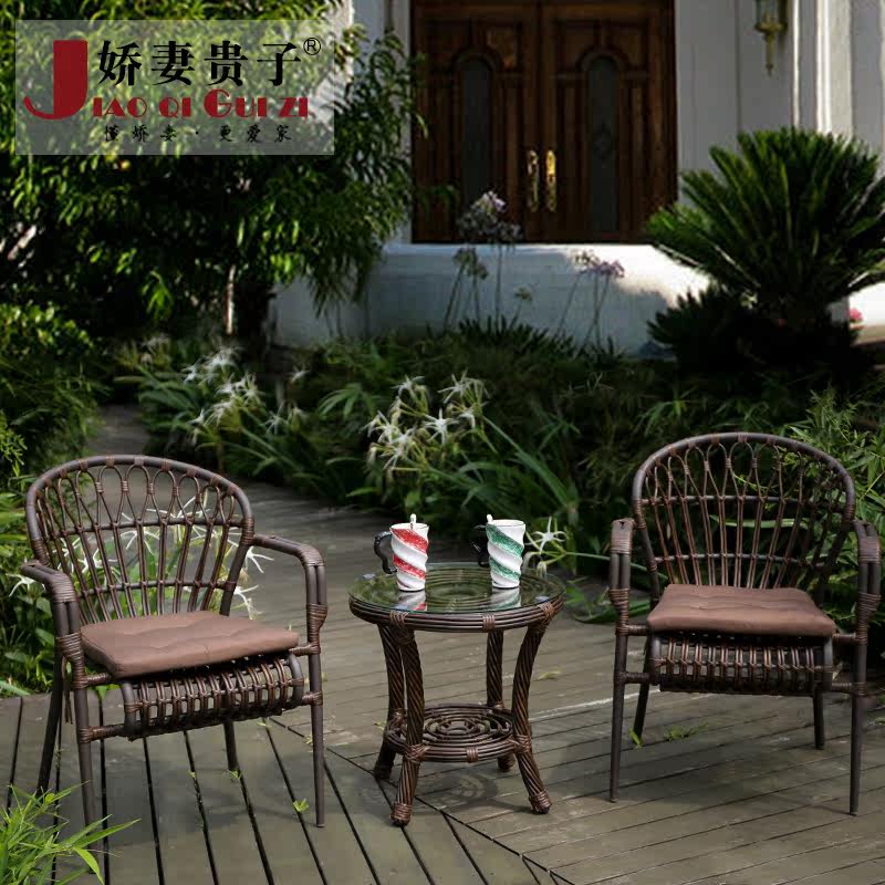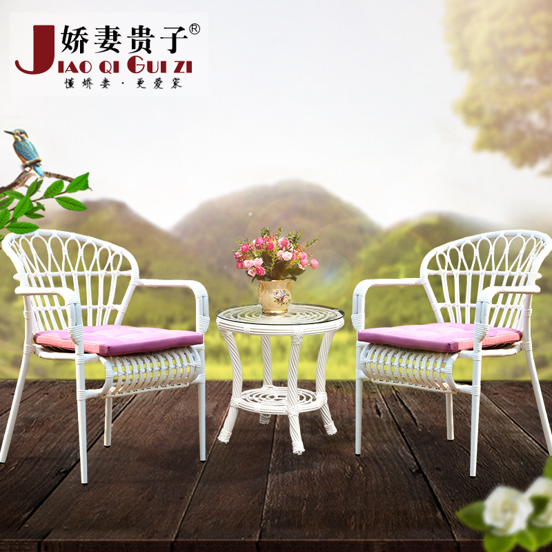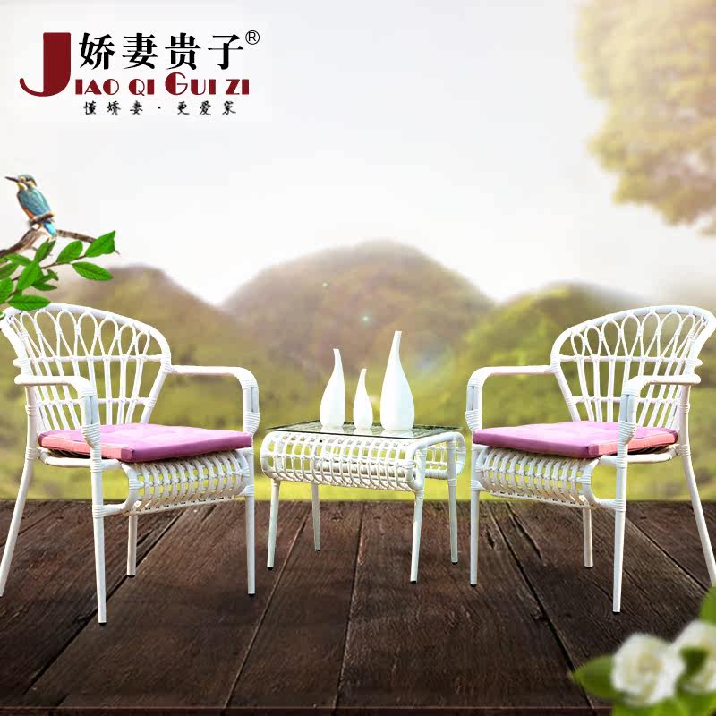 娇妻贵子藤椅三件套户外休闲桌椅