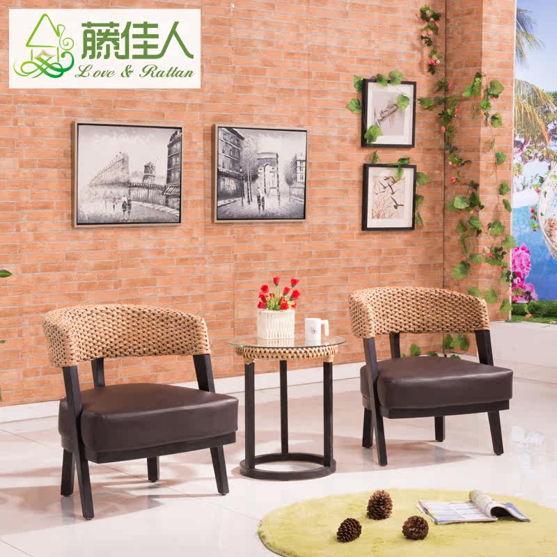 藤佳人真皮沙发椅藤椅茶几三件套3013