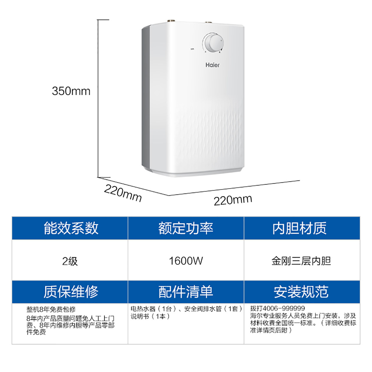 haier/海尔5升厨宝热水器ec5u