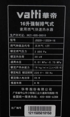 vatti/华帝16升家用燃气热水器jsq30i12024