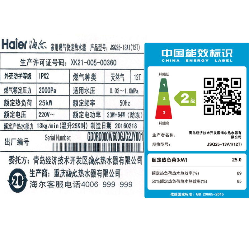 haier/海尔天然气燃气热水器jsq2513a1(12t)