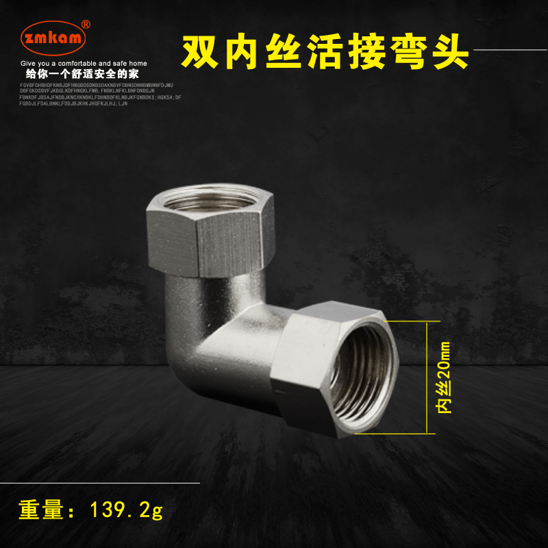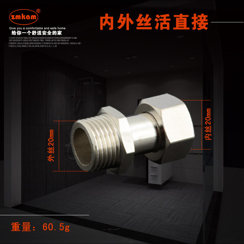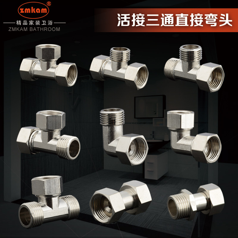 zmkam全铜加厚活接三通方体活接