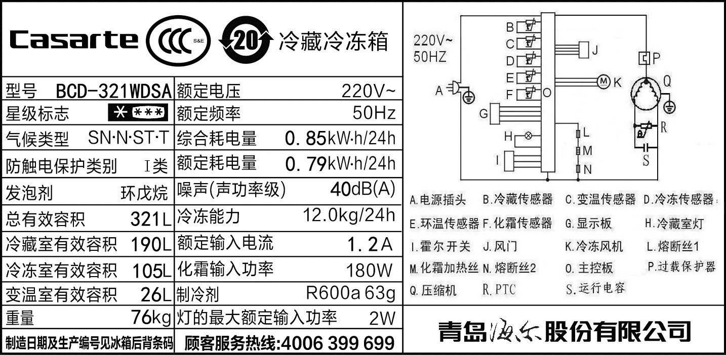 casarte/卡萨帝冷冻冰箱BCD-321WDSA