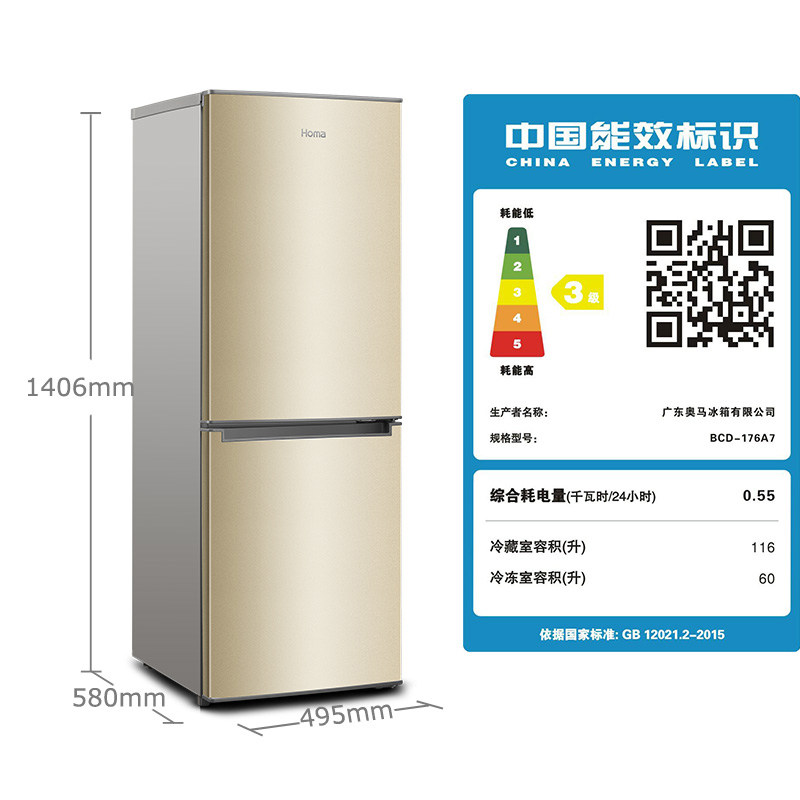 homa/奥马双门冰箱bcd176a7