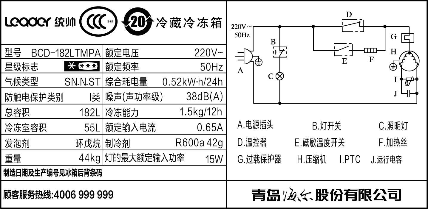 leader/统帅海尔小双门冰箱bcd182ltmpa