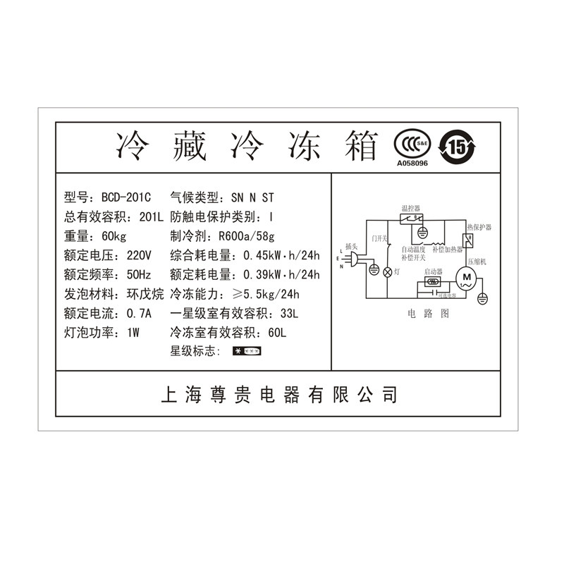 尊贵冷藏冷冻三门家用电冰箱bcd201c