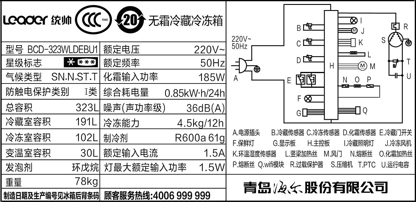 海尔leade家用电冰箱bcd323wldebu1