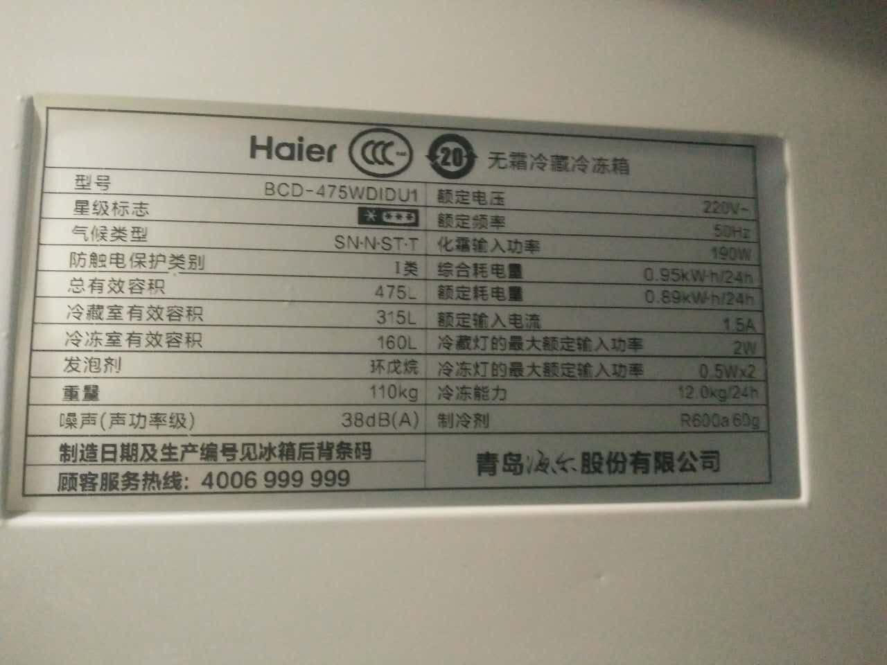 haier/海尔节能电冰箱bcd475wdidu
