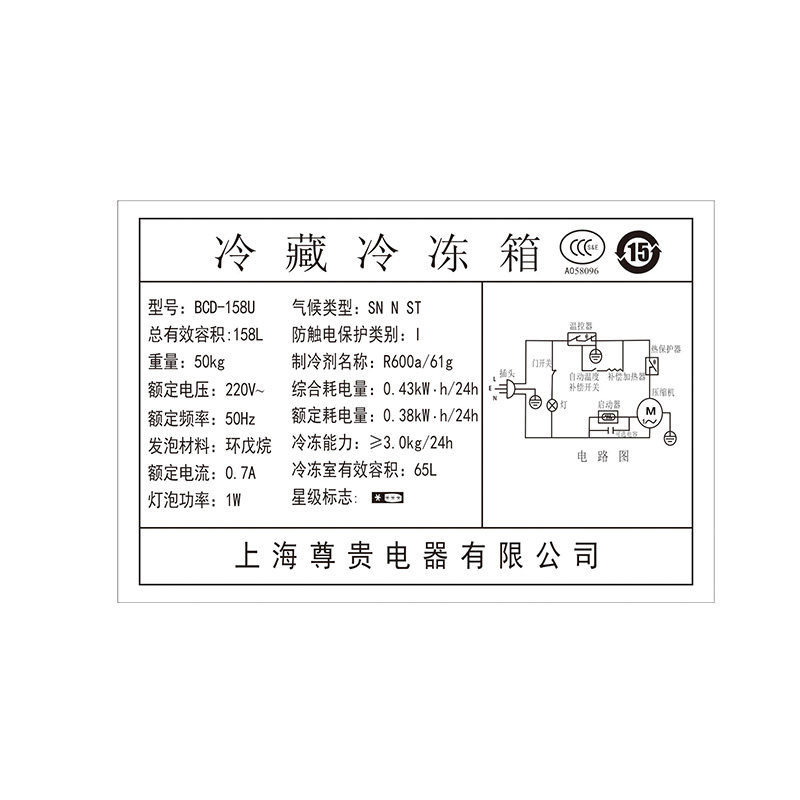 尊贵匀冷双门双温家用小冰箱bcd158u