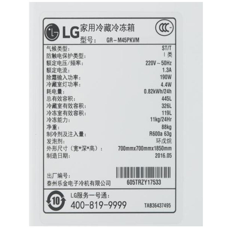 lg460升线性变频双门冰箱grm45pkvm