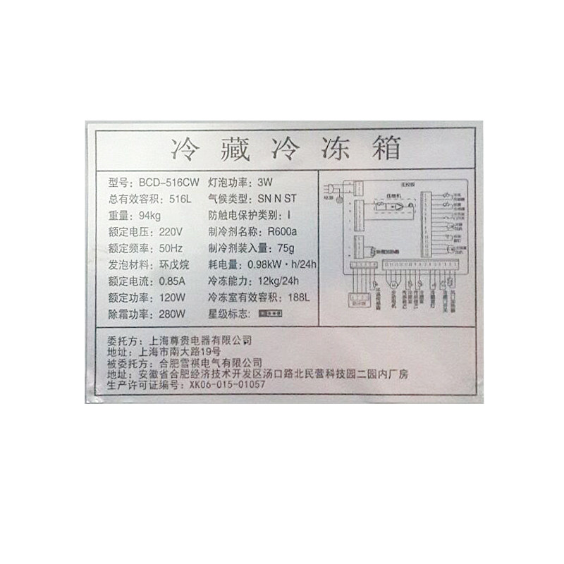 尊贵风冷无霜冰箱bcd516cw