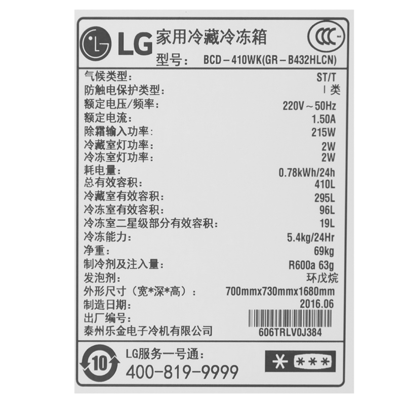 lg410升双门冰箱grb432hlcn