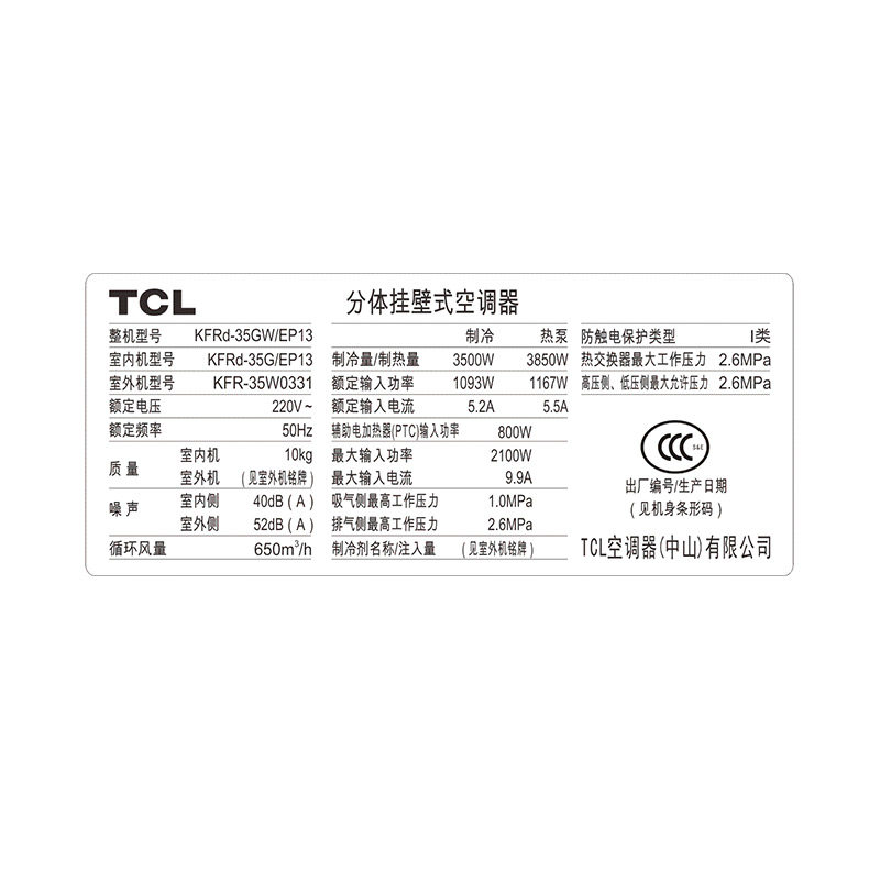 tcl大1.5匹冷暖空调kfrd35gw/ep13