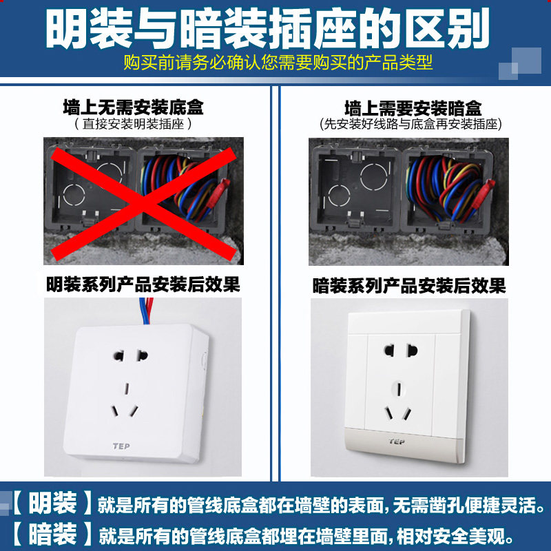 TEP白色86型明装开关插座明装开关插座
