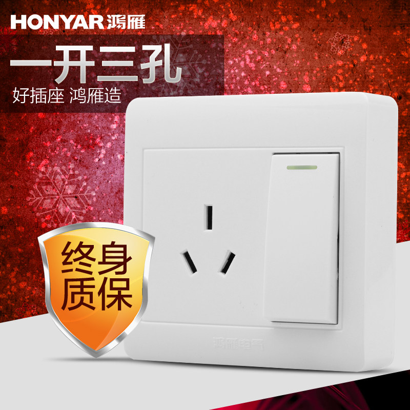 鸿雁墙壁面板一开三孔RM86Z13AK11Y16