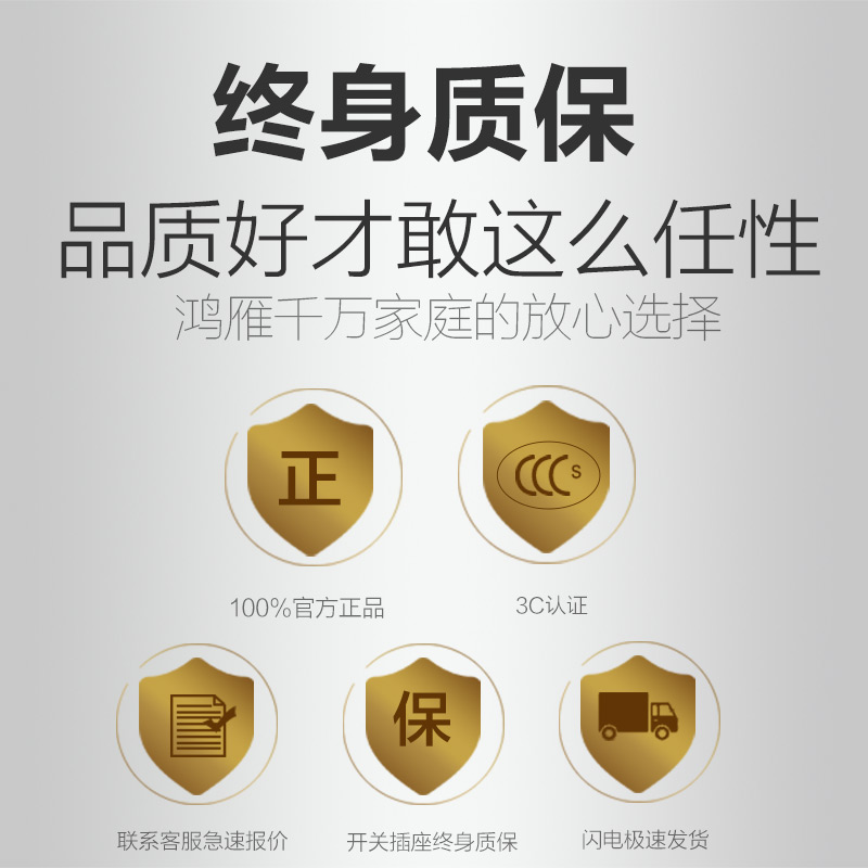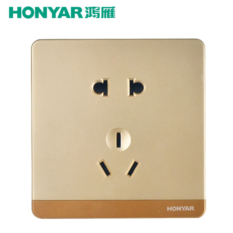 鸿雁带开关插座大面板大板金色