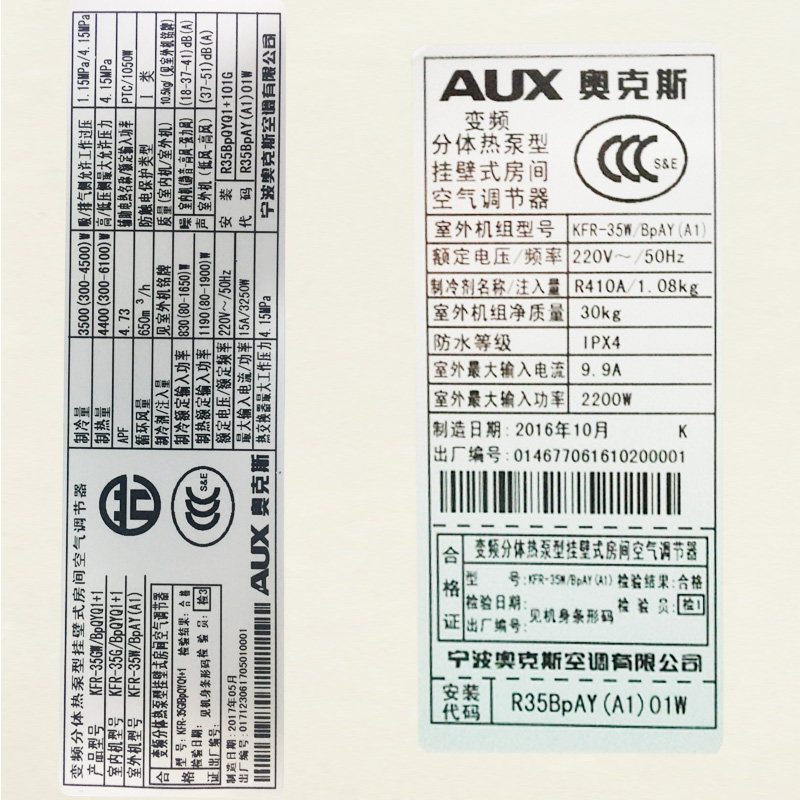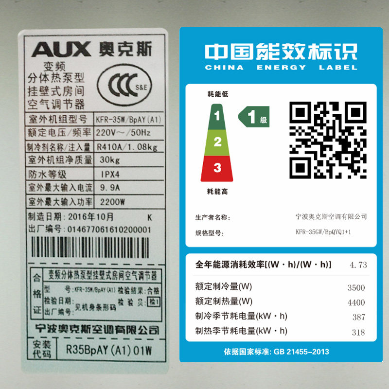 aux/奥克斯挂机智能空调kfr35gw/bpqyq1+1