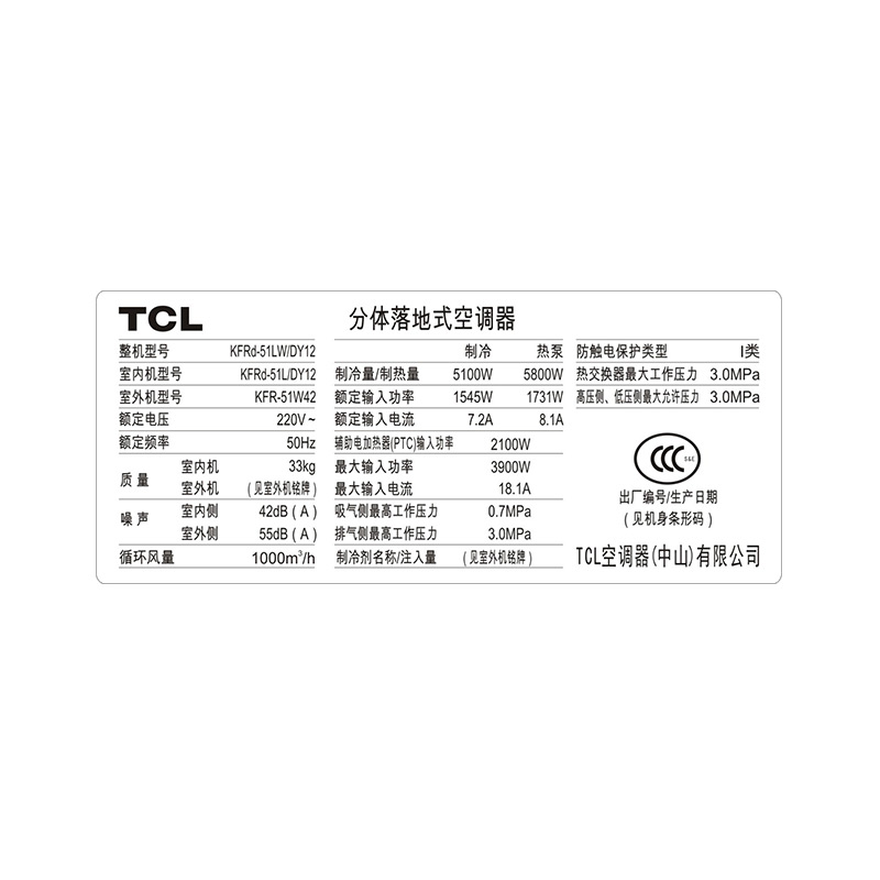 tcl大2匹空调柜机kfrd51lw/dy12