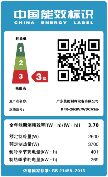 midea/美的空调挂机kfr26gw/wdca3@