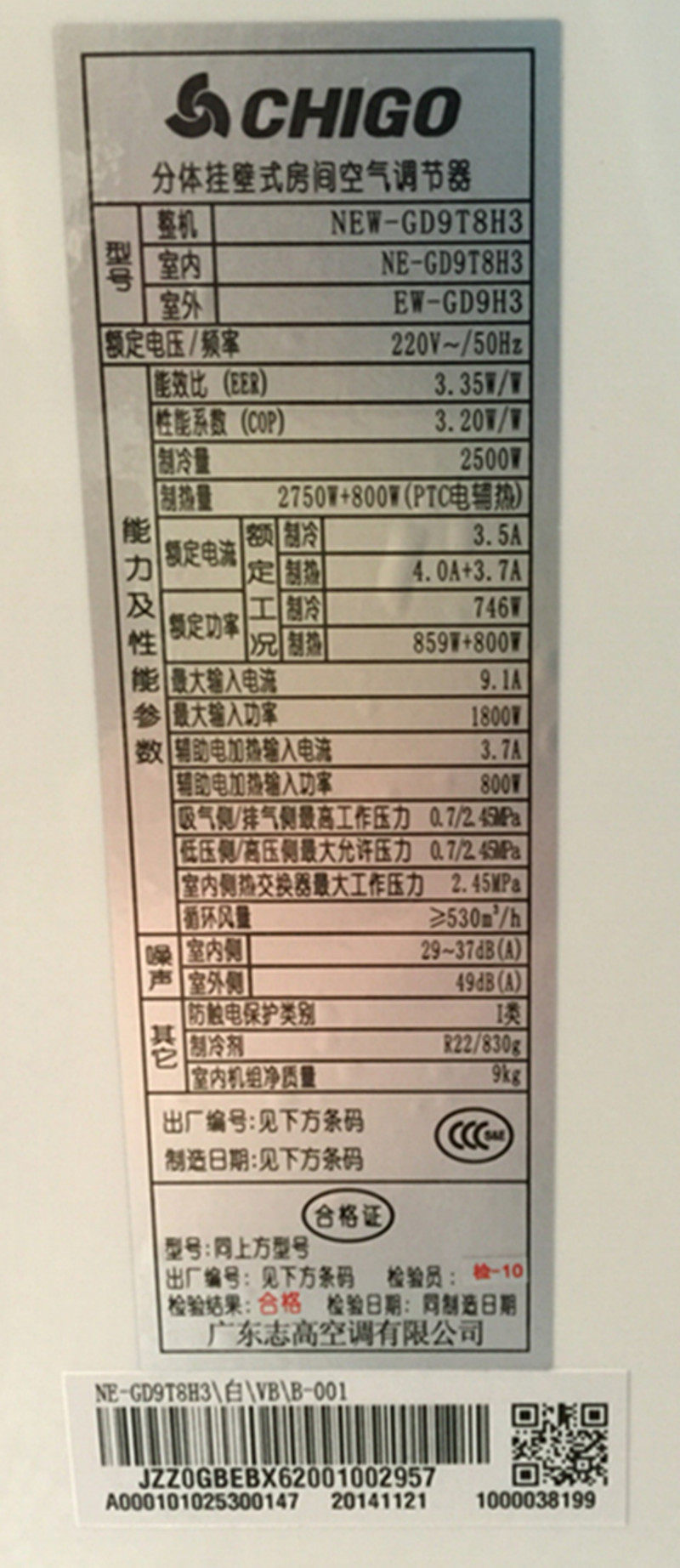 志高空调1匹挂机gd9t8h3
