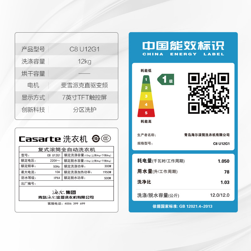 卡萨帝12公斤滚筒洗衣机c8u12g1