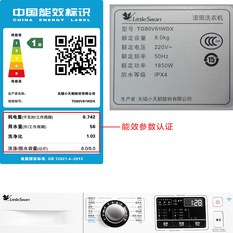小天鹅家用洗衣机TG80V61WDX