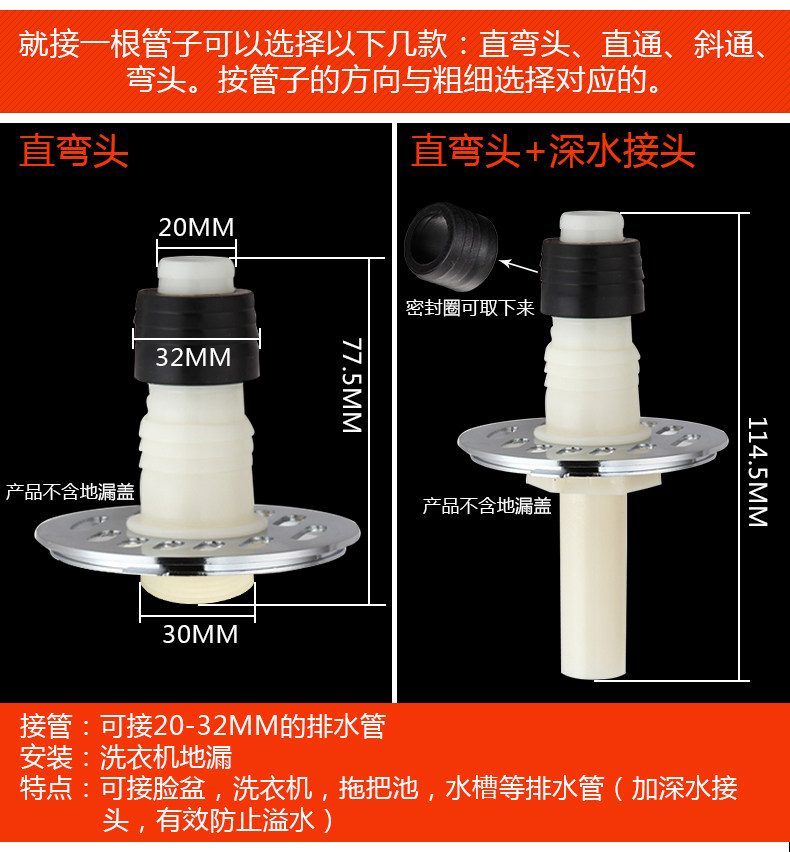 好来屋洗衣机下水管地漏专用接头