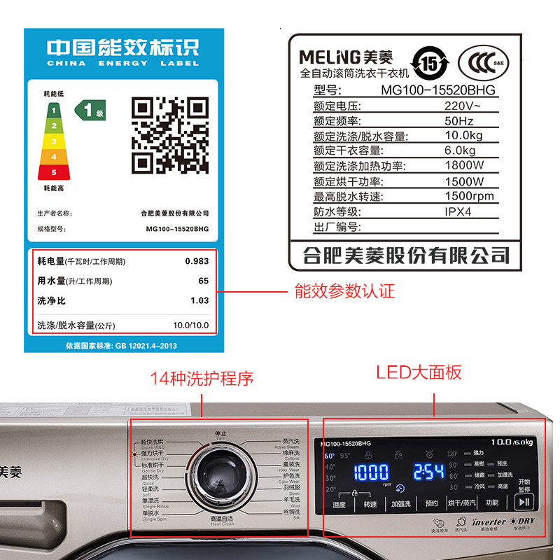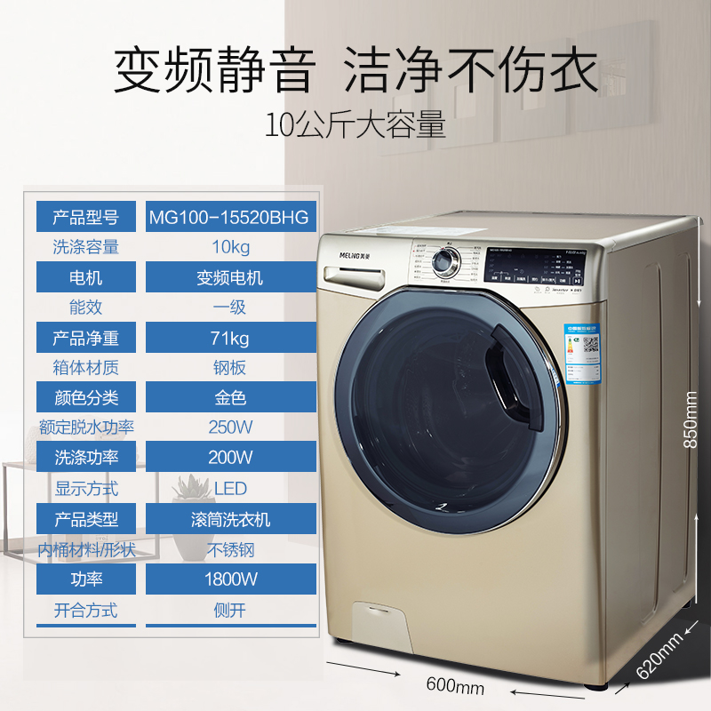 美菱10kg滚筒洗衣机mg15520bhg