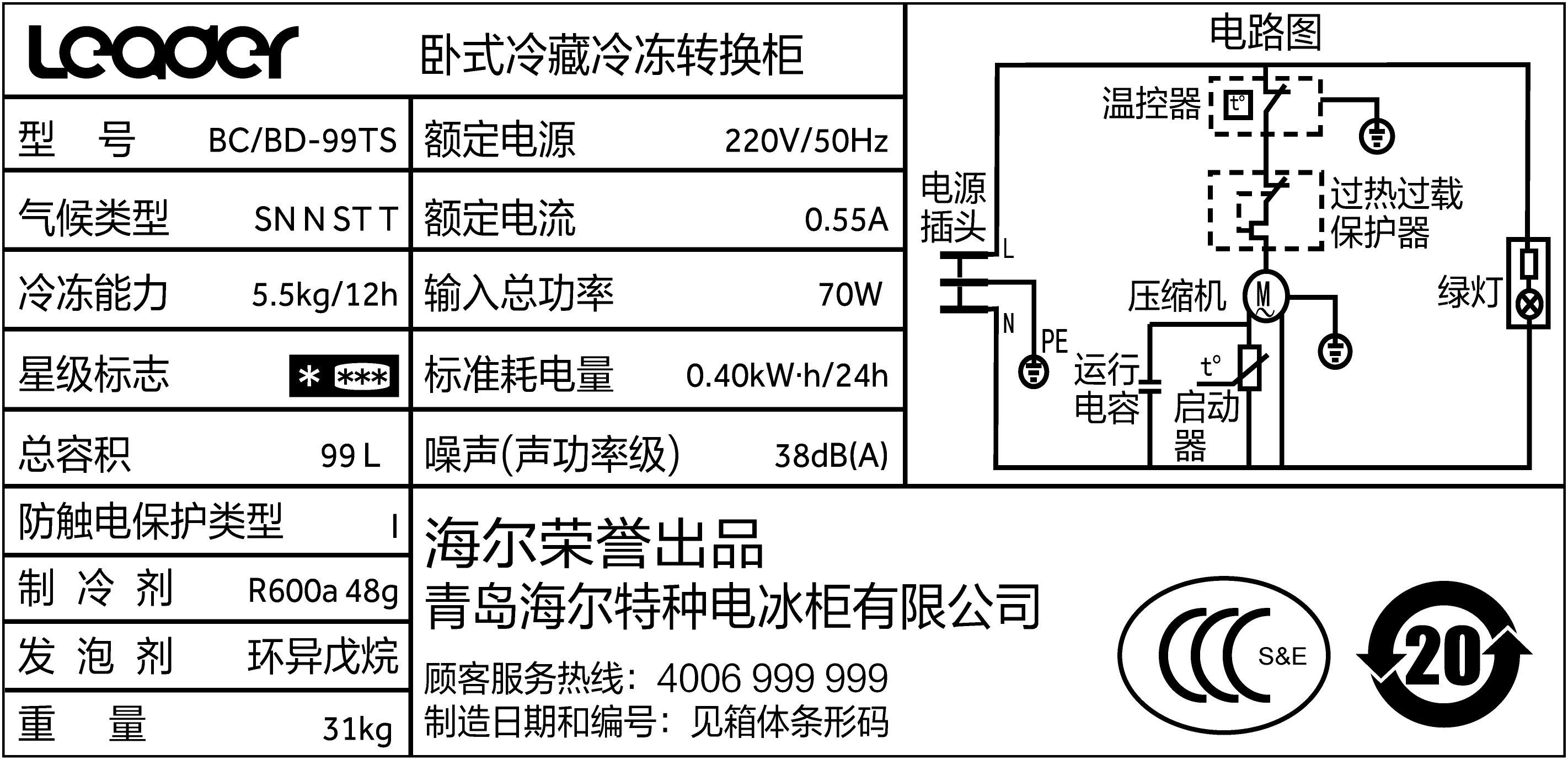 统帅保鲜柜BD-99TS
