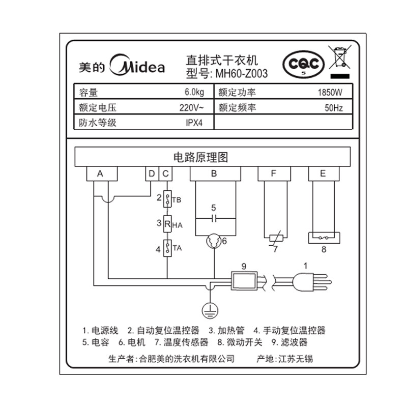 美的6公斤智能滚筒式热烘干机