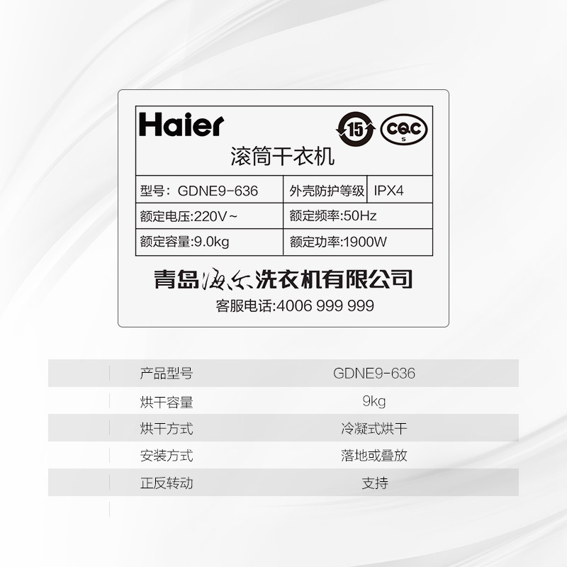 海尔全自动家用冷凝式烘干机EGDNE8829TM
