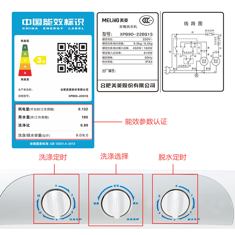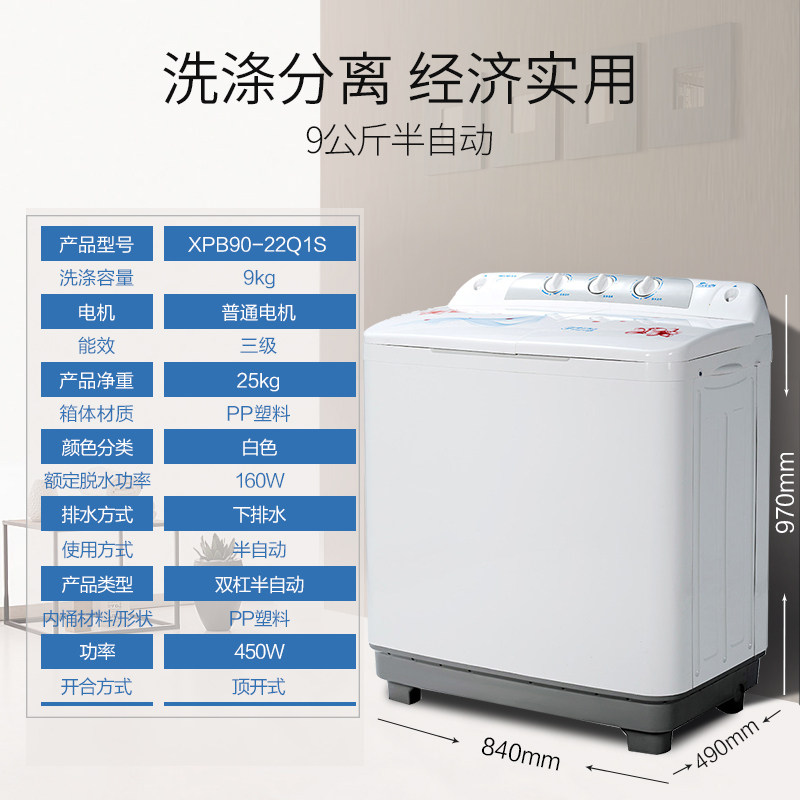 美菱家用/双缸干衣洗衣机xpb9022q1s
