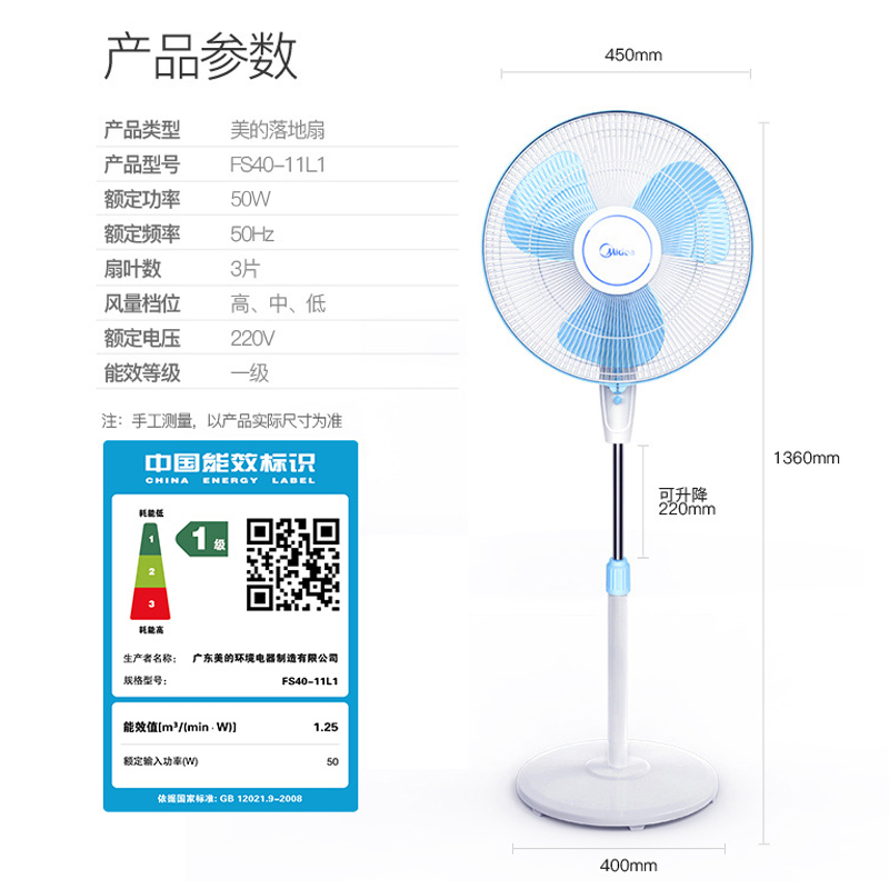 美的电风扇落地扇fs4011l1