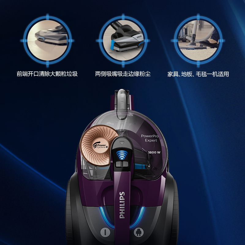 飞利浦(PHILIPS) 卧式吸尘器家用大功率强劲吸力除螨