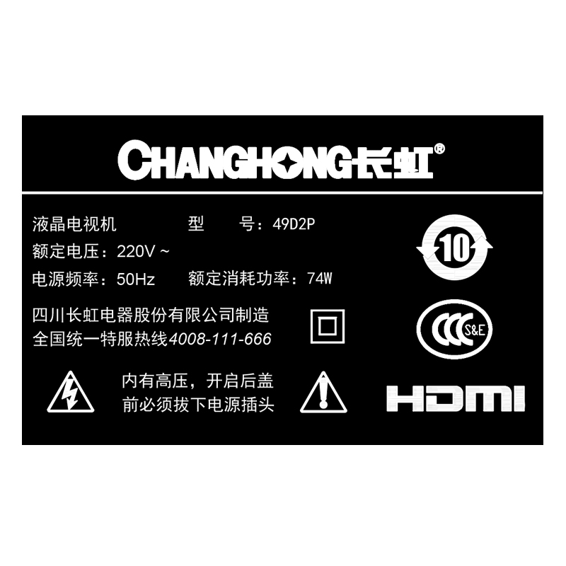 长虹49英寸人工智能电视机49d2p