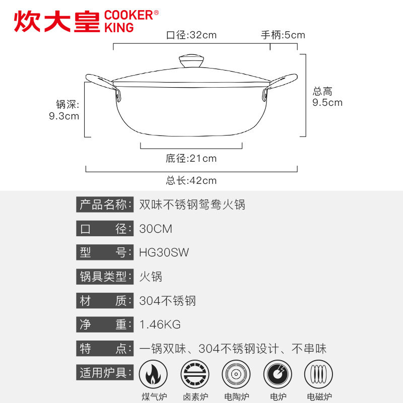 炊大皇304不锈钢鸳鸯锅