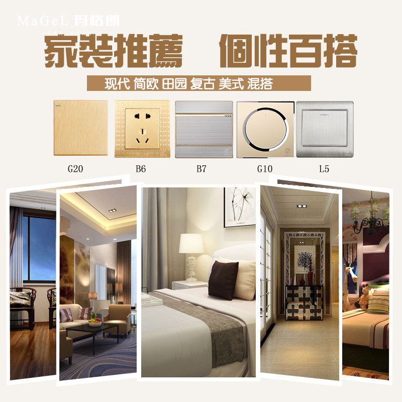 玛格朗香槟金拉丝开关插座面板