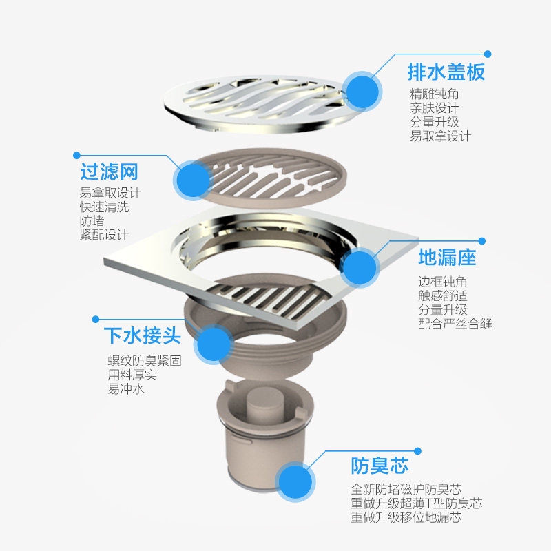 四维全铜防臭地漏