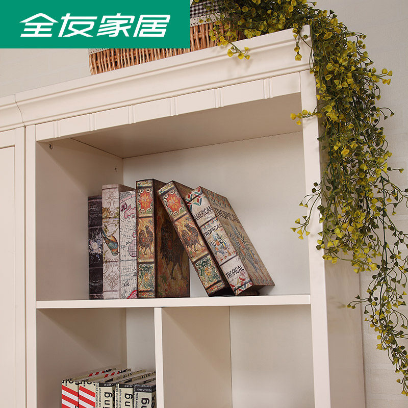 全友家居书柜新款书房美式书柜三门书柜陈列柜书橱储物柜
