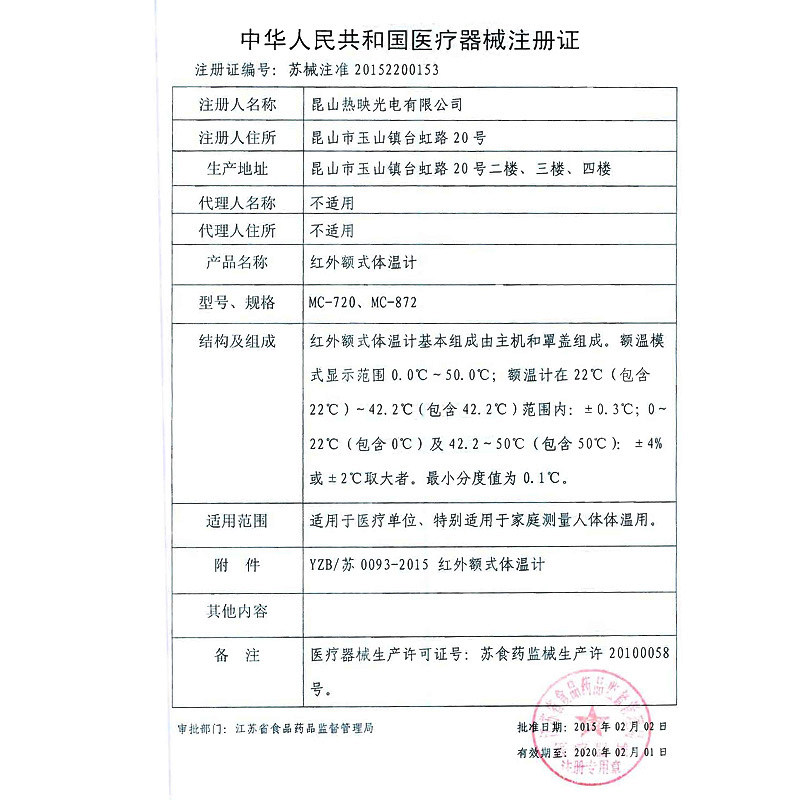 欧姆龙红外额式体温计MC-720
