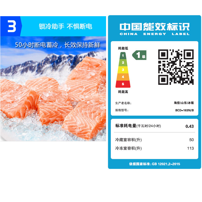 海信冷藏小型冰柜BCD-163N/B