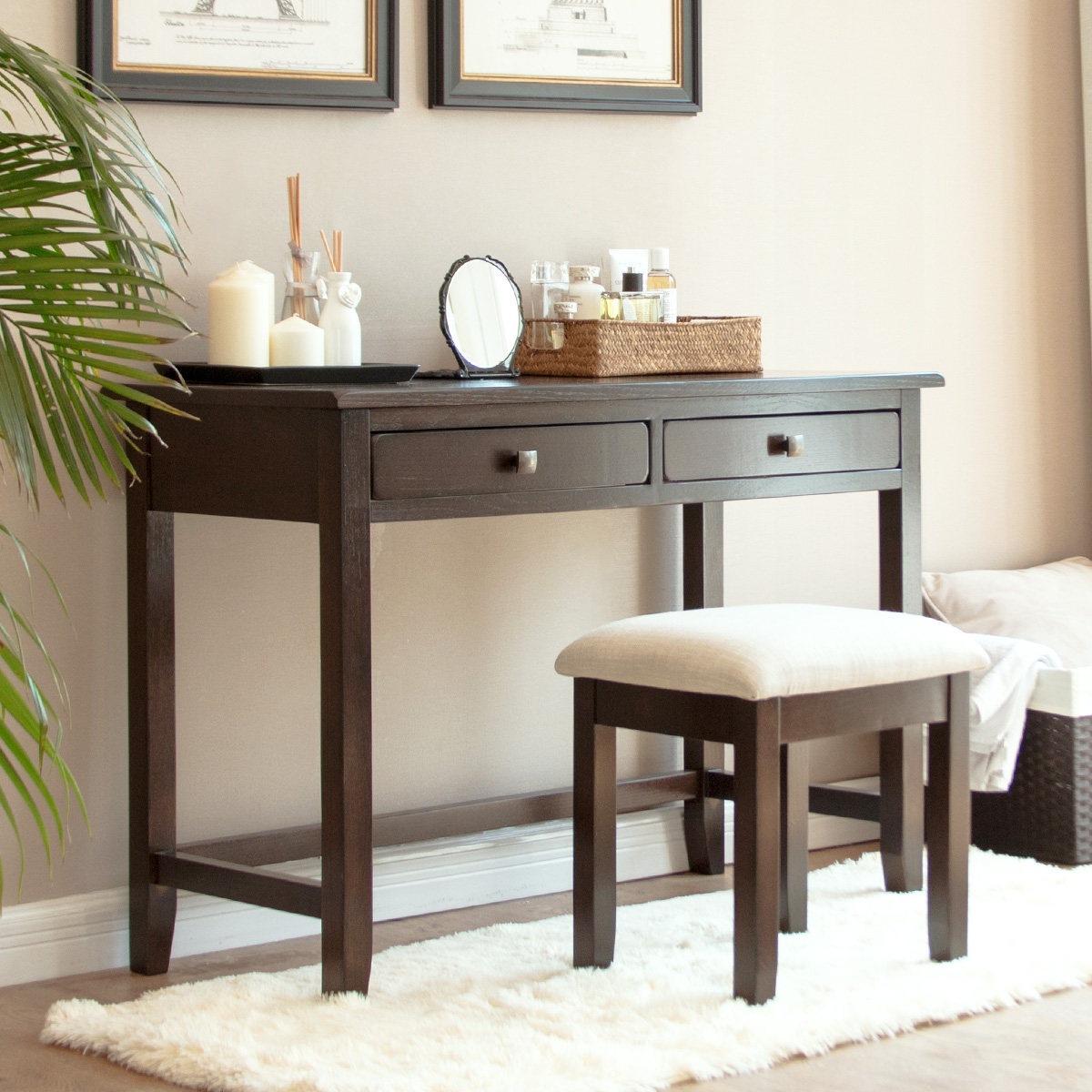 美式经典红橡木化妆凳